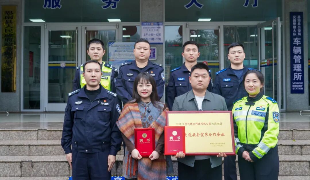2026 年 3 月 27 日,思南县公安交通管理局正式举行授牌聘任仪式,授予贵州玮捷传媒有限公司思南县道路交通安全宣传合作企业称号,同时聘任公司法人魏正勇(魏毅)为思南县道路交通安全宣传大使,标志着思南县交通安全宣传工作正式开启 “警媒联动、政企协同、全民参与” 的全新篇章。